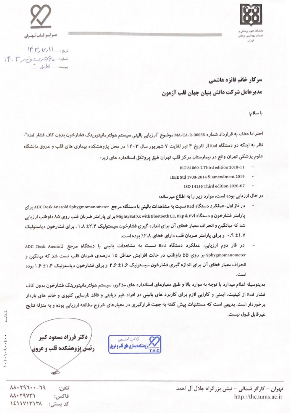 The Rad device, using artificial intelligence technology and without the need for an arm cuff, continuously and accurately monitors blood pressure throughout the day and night. The device's lightweight and small design provides a comfortable and unobtrusive experience, especially during sleep, for users and offers valuable data for comprehensive analysis of blood pressure and cardiovascular indicators to physicians.